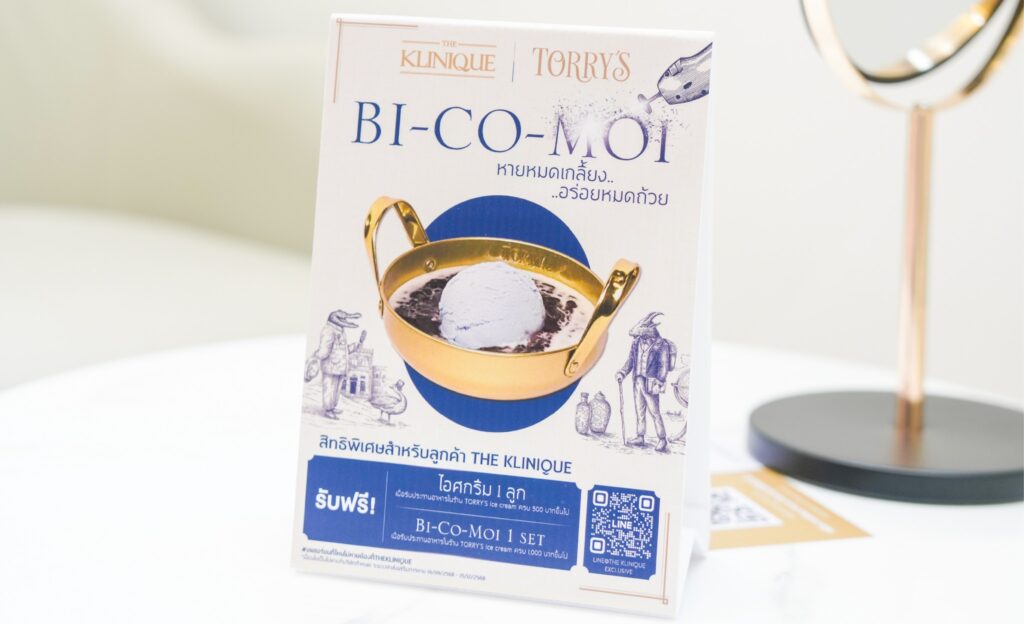โดยจุดเริ่มต้นมาจากการตั้งคำถามสนุก ๆ จากเมนูประจำของคุณหมอเติ้ลเวลาไปร้าน Torry’s Ice Cream ที่จังหวัดภูเก็ตว่าเมนูไอศกรีมบี๊โก่หมอย (BI CO MOI) คือหม-อยอะไร? หม-อยของใคร? จนมาเชื่อมโยงกับโปรแกรมยอดนิยมของ THE KLINIQUE อย่างเลเซอร์กำจัดขนโปรแกรม Gentle YAG Remove ซึ่งมีบริการเลเซอร์กำจัดขนบิกินี่หรือบริเวณจุดซ่อนเร้นด้วยเช่นกันจนกลายเป็นการไอเดียของการร่วม Collabs กันระหว่าง THE KLINIQUE และ Torry’s Ice Cream ในครั้งนี้