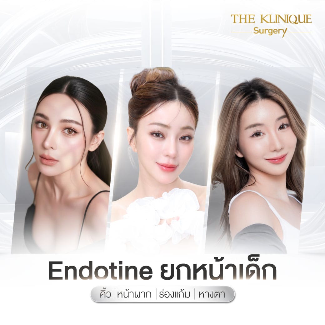 การทำ Endotine ต้องบอกว่า เป็นการทำศัลยกรรมดึงหน้า ที่ทำได้ทั้งทั่วใบหน้าหรือทำแค่บางส่วน บางจุดได้ เช่น มีปัญหาหน้าผากย่น สามารถใช้เอนโดไทน์ในการล็อกยกดึงหน้าผาก หว่างคิ้ว หรือ ใช้ในการผ่าตัด ยกหางตาตก endotine ยกคิ้ว ยกร่องแก้ม ทำแค่นิดเดียว แต่ดูเด็กลงได้เป็น 10 ปี โดยไม่ต้องทุบหน้า หรือดึงหน้าแบบในสมัยก่อน แต่สำหรับบางคนที่มีอาการหางตาตก หรือหนังตาเยอะ ไขมันชั้นตาเยอะ อาจจะมีการทำร่วมกันกับการผ่าตัดหนังตา เพื่อจัดเรียงชั้นไขมันใต้ตา หรือ เทคนิคการกรีดเปิดหางตาเพียงแค่นิดเดียว อย่างเช่นคุณต้นหอม ซึ่งแค่ทำ Endotine บริเวรหน้าผากกับตา ก้ดูเปลี่ยน แต่ไม่ใช่การเปลี่ยนหน้าใหม่ แต่เปลี่ยนผิวว ที่ดูหย่อนคล้อย ดูแก่ ให้กลับมาเด้กอีกครั้ง มีความเต่งตึง เปล่งปลั่ง และเห็นผลลัพธ์อยู่ได้นาน