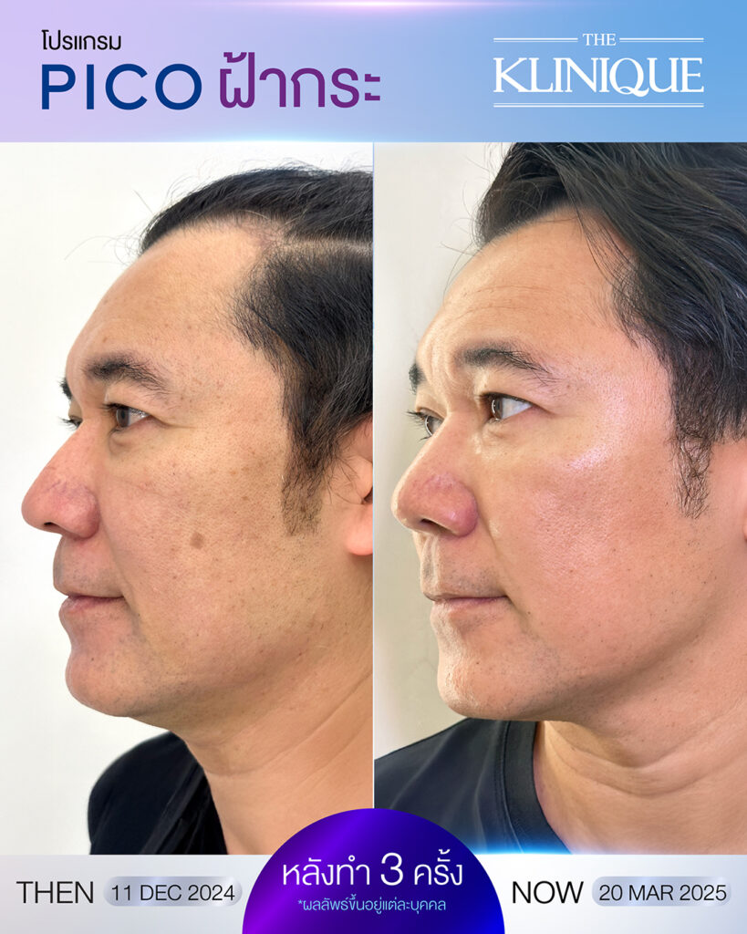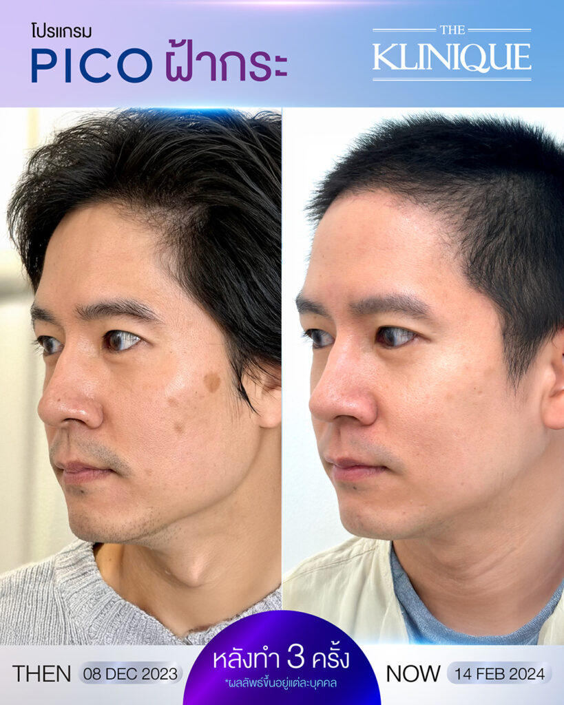 - ผลลัพธ์หลังทำ Pico Laser หลุมสิว รักษาฝ้า กระ จุดด่างดำ อาจแตกต่างกันไปในแต่ละบุคคล ขึ้นอยู่กับหลายปัจจัย เช่น ความรุนแรงของปัญหา โทนสีผิว อายุ การตอบสนองต่อเลเซอร์และวิธีดูแลตัวเองของแต่ละคน จึงจำเป็นต้องได้รับการประเมินสภาพผิวและวางแผนทำเลเซอร์อย่างเหมาะสม