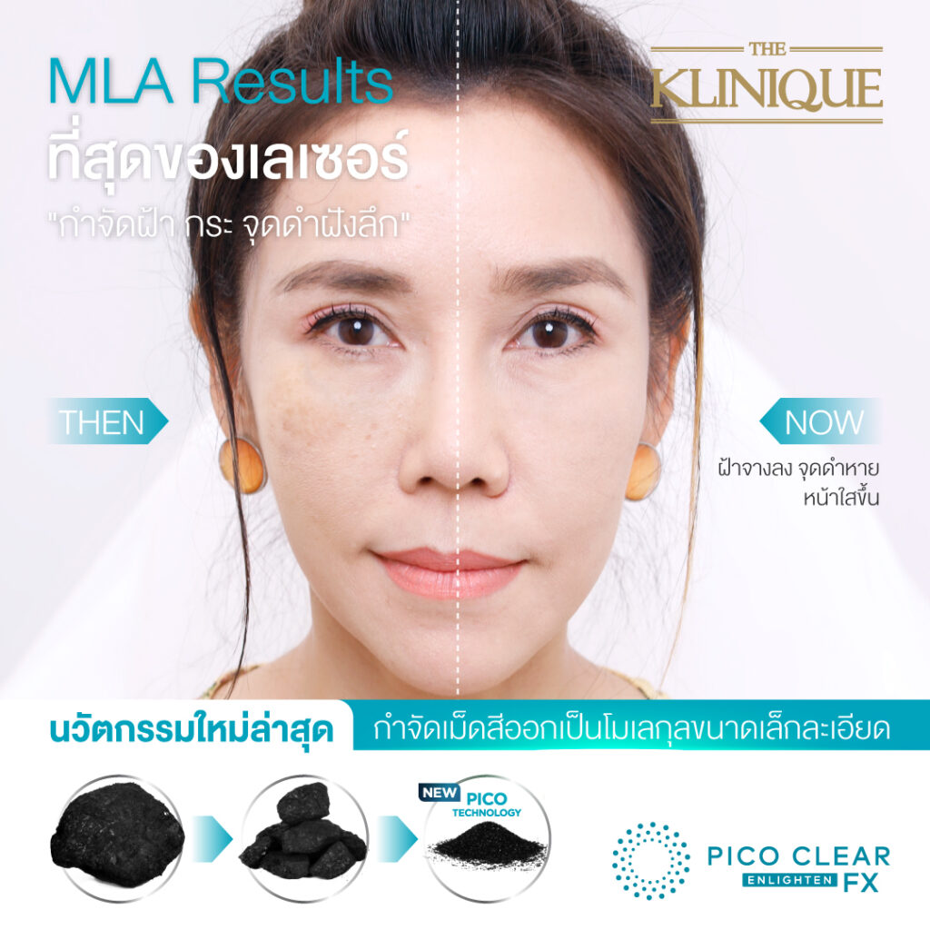 - ประสิทธิภาพสูง ส่งพลังงานได้แม่นยำ เห็นผลลัพธ์ชัดเจน เทคโนโลยี Pico Laser ใช้พลังงานแสงความเข้มข้นสูงในระยะเวลาสั้นๆ สามารถปรับระดับพลังงานและขนาดที่ใช้ได้อย่างละเอียด ส่งพลังงานลงใต้ชั้นผิวเพื่อจัดการปัญหาได้อย่างเจาะจง เม็ดสีแตกตัวเป็นอนุภาคขนาดเล็กละเอียด เห็นการเปลี่ยนแปลงได้ตั้งแต่ครั้งแรกและใช้จำนวนครั้งในการรักษาน้อยกว่าวิธีเลเซอร์ทั่วไป
