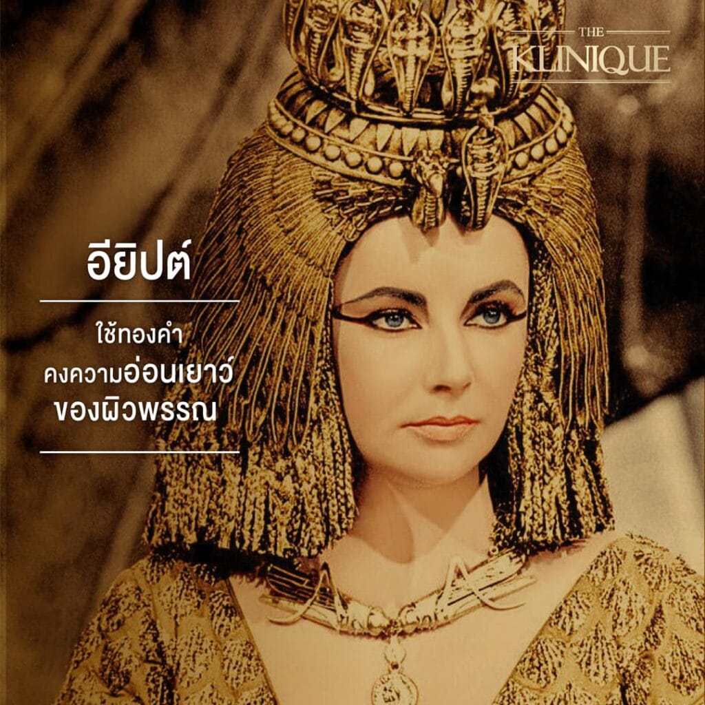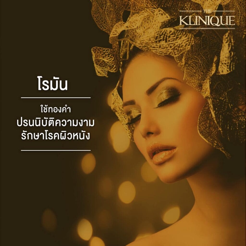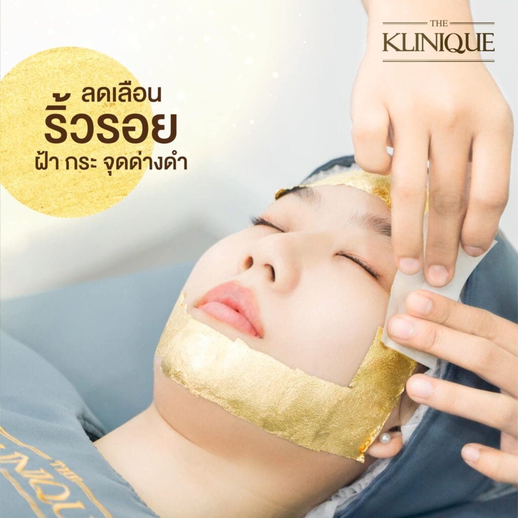 เคล็ดลับความงามในอุดมคติตั้งแต่ยุคพระนางคลีโอพัตรา ที่มีการใช้คุณค่าของทองคำบริสุทธิ์ในการฟื้นบำรุงผิวพรรณและลดเลือนริ้วรอยแห่งวัย นอกจากนั้นยังถูกใช้เป็นตัวแทนของความงามอันเลอค่าในหลากหลายประเทศมาทุกยุคสมัย THE KLINIQUE จึงสร้างสรรค์โปรแกรมการฟื้นฟูผิวด้วยทองคำบริสุทธิ์ 99.99% ควบคู่กับเทคนิคนวดยกกระชับผิวหน้าแบบฉบับเฉพาะเดอะคลีนิกค์ โดยใช้หลักการนวดที่มีแบบแผนและมาตรฐานที่ได้รับการยอมรับในระดับสากลเป็นการนวดระดับกล้ามเนื้อ (Deep Tissue Massage) เพื่อยกกระชับผิวหน้า พร้อมเพิ่มการไหลเวียนโลหิต กระตุ้นการสร้างผิวใหม่ให้แข็งแรงและกระจ่างใส