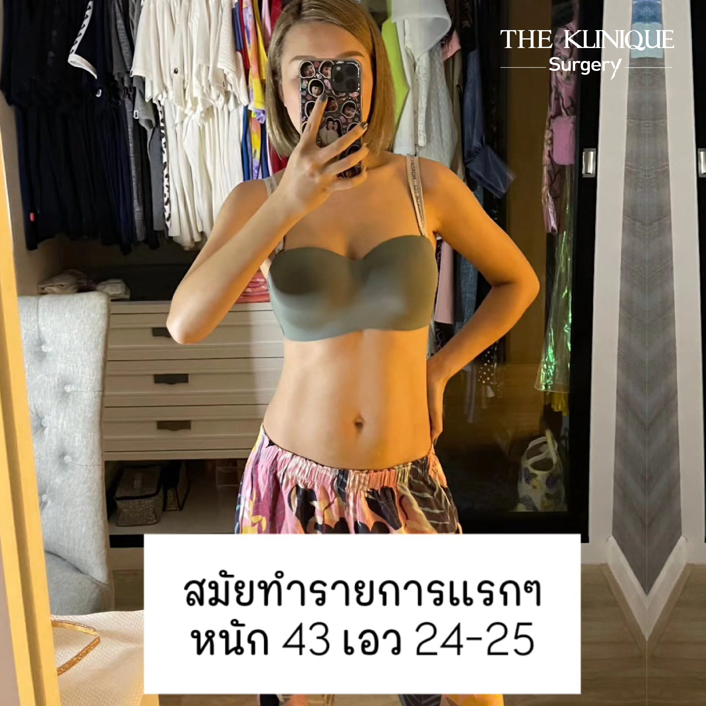 ก่อนมีลูกเคยมีรอบเอวอยู่ที่ 25 นิ้ว จนกระทั่งก่อนตัดสินใจดูดไขมันที่เดอะคลินิก เอวอยู่ที่ 28 ก่อนที่ทุกอย่างจะสายเกินไป และก้าวข้ามไปถึงเลข 3 เลยขอหยุดหุ่นพังๆ กู้ร่างใหม่ ปั้นเอว ให้เป๊ะปัง ทวงหุ่นที่เคยพังกลับมาเป็นสาว ไซซ์ S ให้ได้ และน้ำหนักจาก 54 ขอกลับมาเป็นสาวน้ำหนักแค่เลขสี่อีกครั้งก็พอ