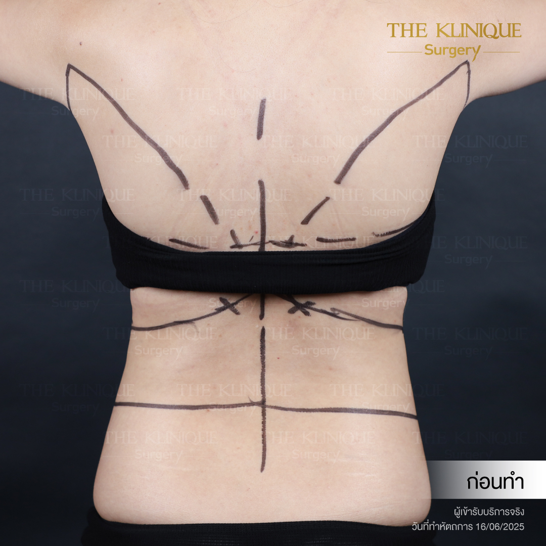 บริเวณช่วงเอวที่ดูดออก ดังนี้ ท้องบน+ท้องล่าง+เอวเอส+ปีกหลัง+สะโพกด้านล่าง+ และสร้าง Sexyline
